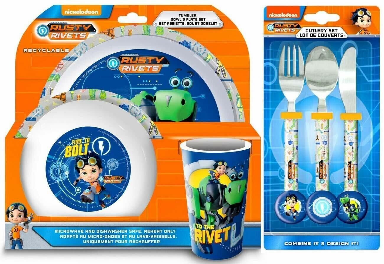 Childrens Breakfast Set Rusty Rivets 6 Piece Cartoon Dinner Lunch Bowl Plate