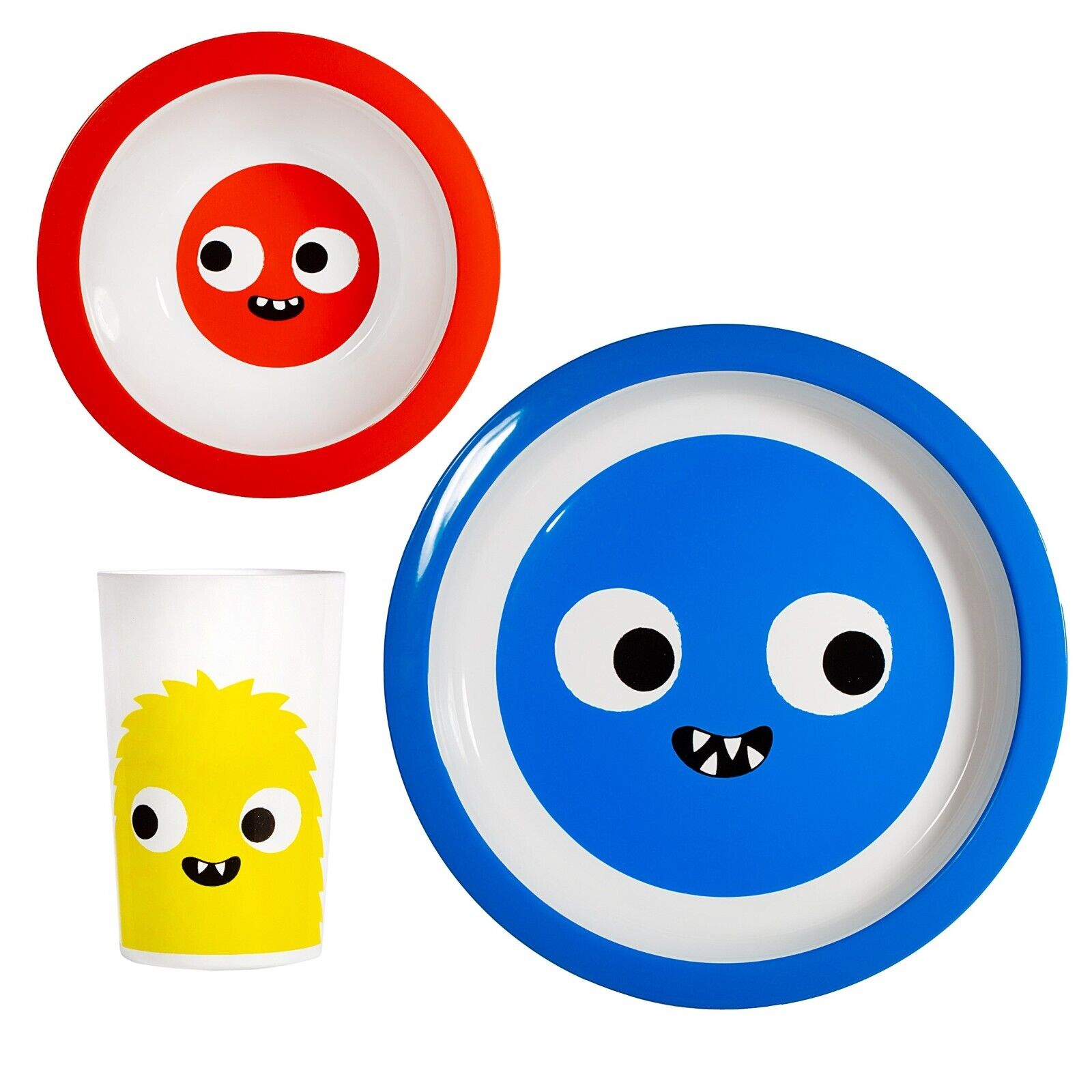 Sass&Belle Monster Childrens Kids Table Set Plate Bowl Cup Safe Dinner Xmas Gift