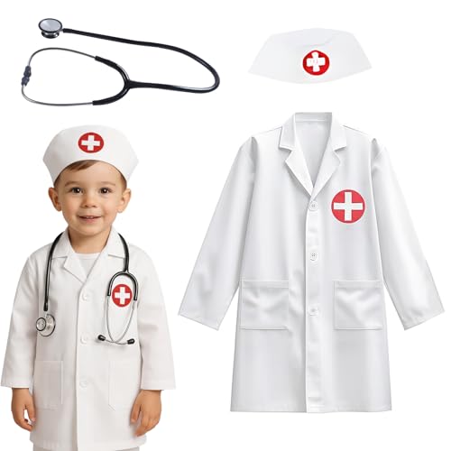 Nybhyjka Doctor Costume For Kids Doctors Outfit 90 CM Kids Hospital Doctor Fancy Dress Costume Children's Doctors Coat Child Role Play Costumes Unisex Dress Up Role Play For Kid 3-8
