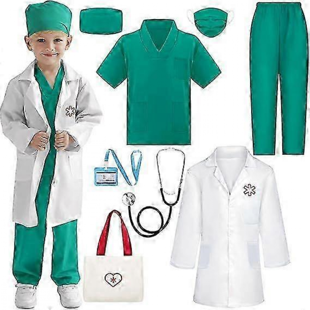 KumSoomliy Kids Doctor Costume for Children's Role Play Games Little Kids Doctors Kit for Career Day World Book Day Green 9-10Y