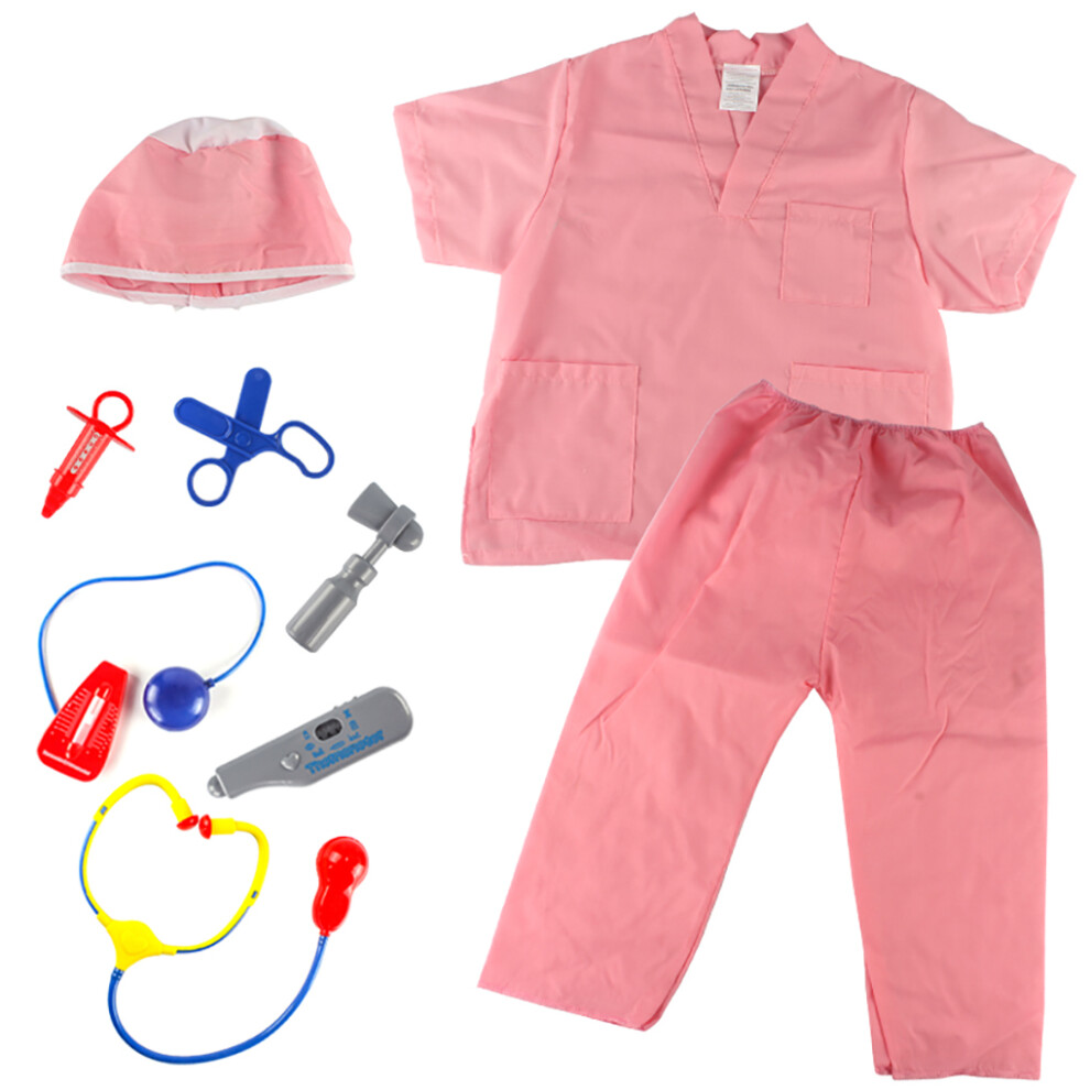 PINK GIRL'S DOCTOR / NURSE'S UNIFORM COSTUME CHILDREN'S MEDICAL FANCY DRESS - M