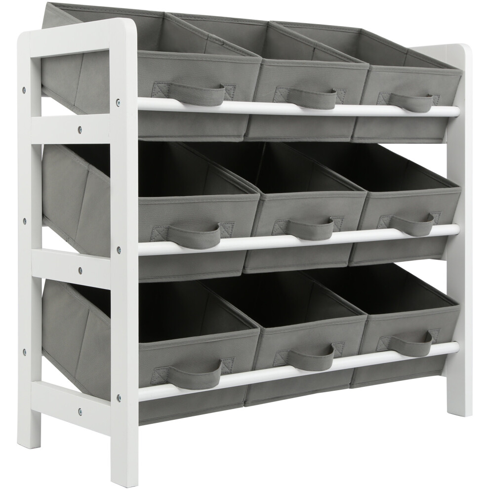 (Grey) Charles Jacobs 3 Tier Toy Storage 9 Boxes Drawers Childrens Shelf Kids Bedroom