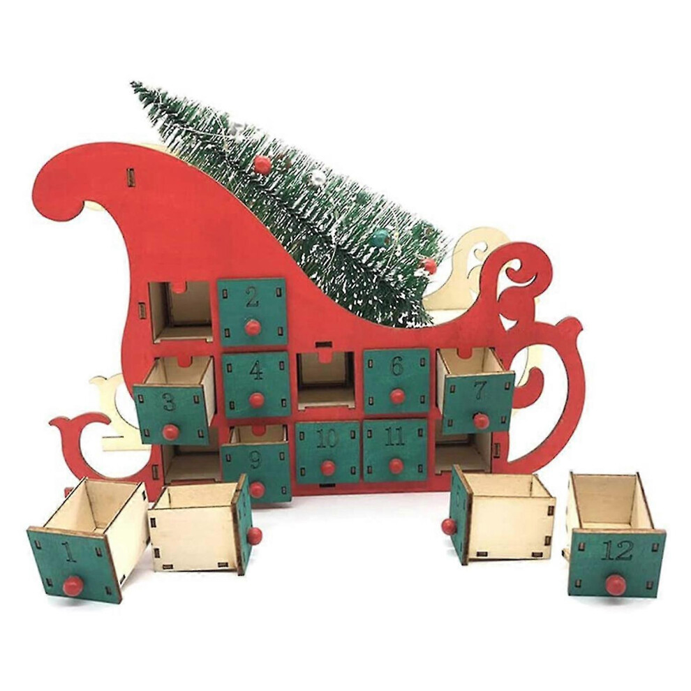 (As show, One size) Christmas Countdown Calendar Ornaments Wooden Calendar with 24 Drawers Children's Christmas Gifts a