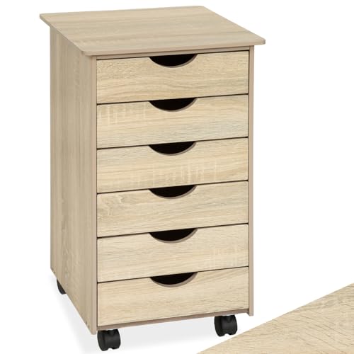 TecTake® Children's Chest of Drawers with 4 Castors & 6 Storage Drawers, Compact & Easy-to-Clean Storage Unit for Kids with Safe Rounded Edges, Ideal for Clothes, Toys & Under Desk Storage - Oak