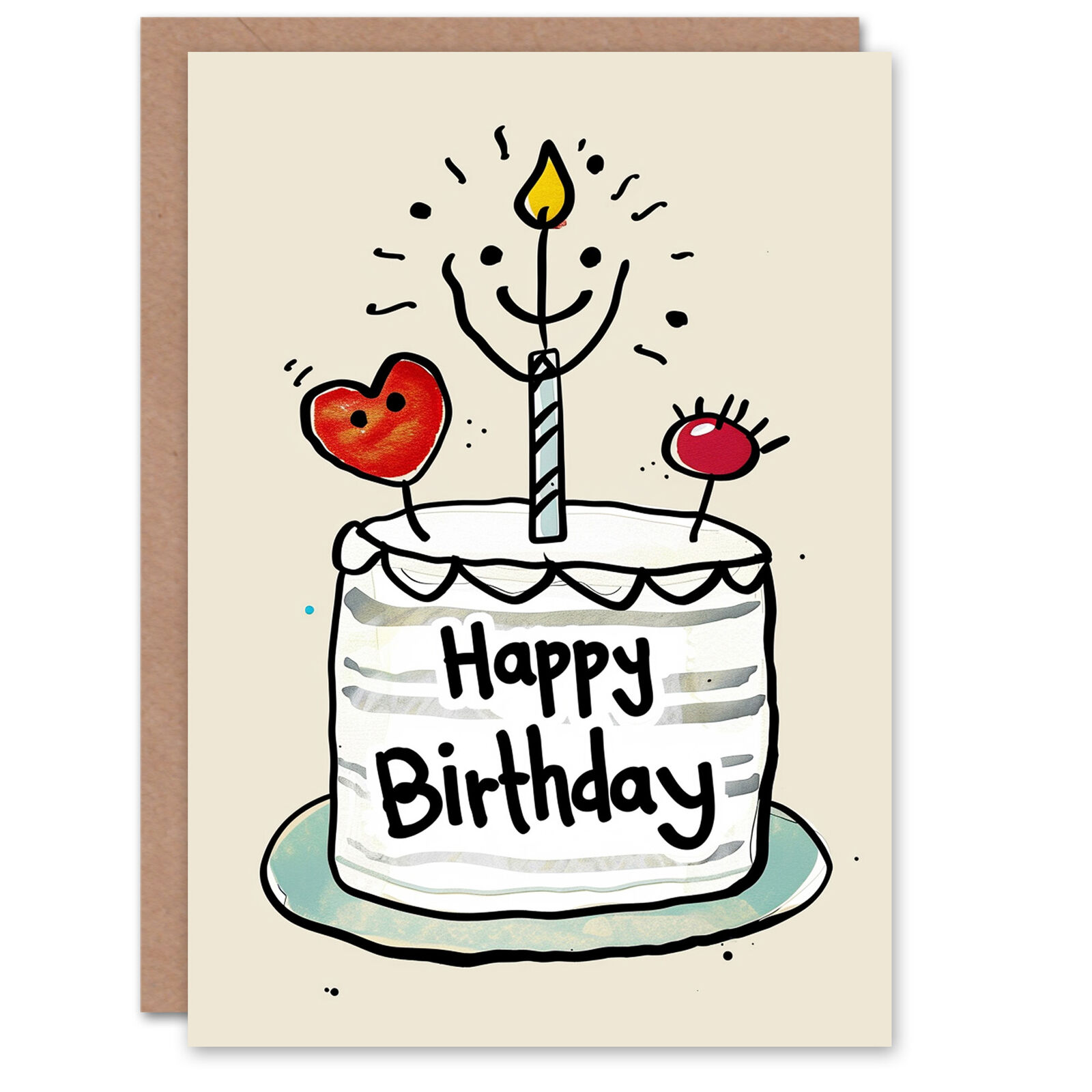 Birthday Card Simple Smile Cake Childrens Drawing Fun Cute For Child Kids Card