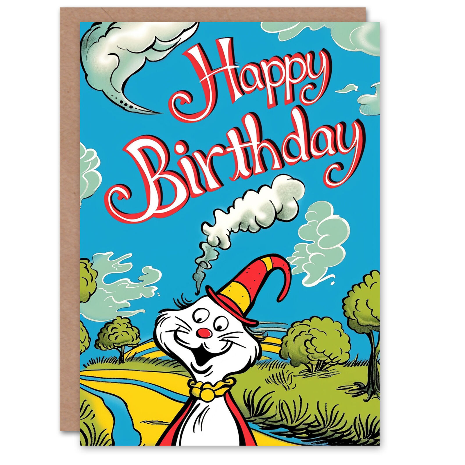 Birthday Card Cat Lover Childrens Book Drawing Hat Park Child Kids Greeting Card