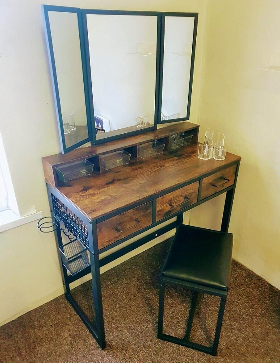 Dressing Table With Mirror And Stool Vanity Makeup Set Desk Bedroom 3 Drawers