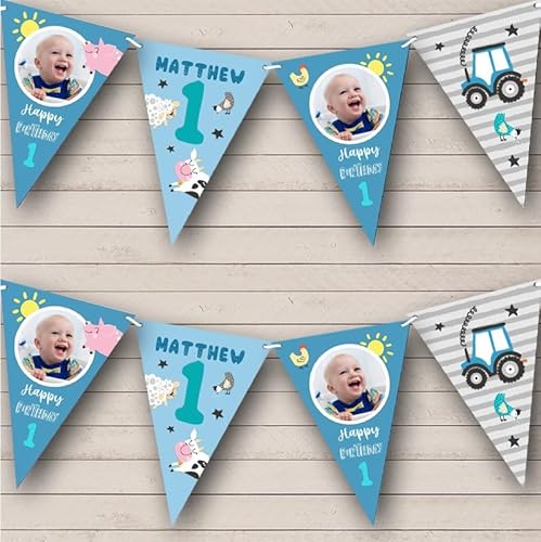 1st Boy Baby Farm Animals Tractor Photo Any Age Personalised Any Age Kids Children's Birthday Party Bunting - Hanging Party Decoration - Birthday Party Banner Garland | Decorative Party Supplies