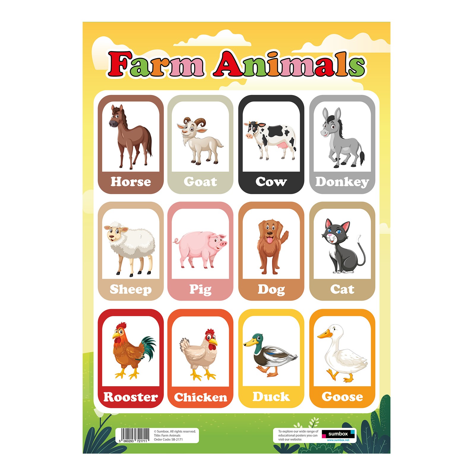 Farm Animals Educational Poster A3 Size Children's Learning Wall Chart Animal