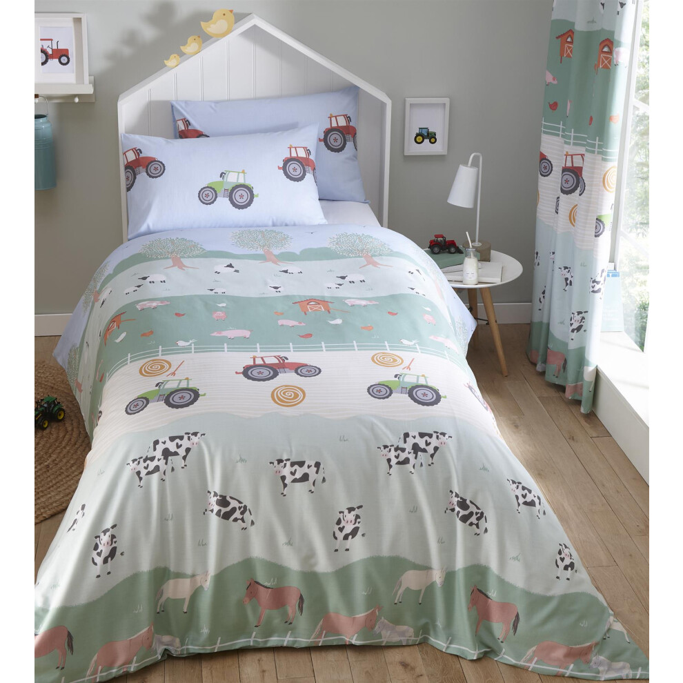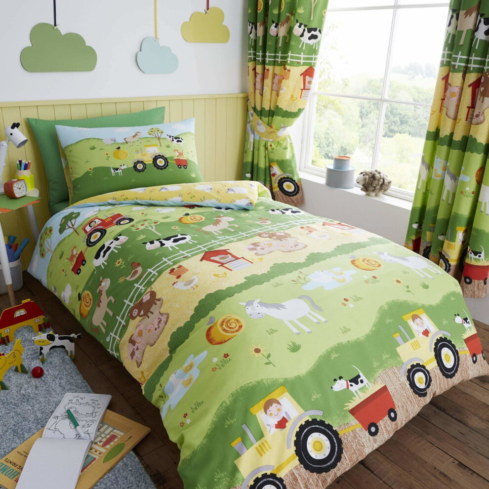 Homespace Direct On The Farm Duvet Cover Set Kids Duvet Cover Set Farmyard Animals Easy Care Bedding Childrens Tractor Bed Linen with Pillowcases - Single