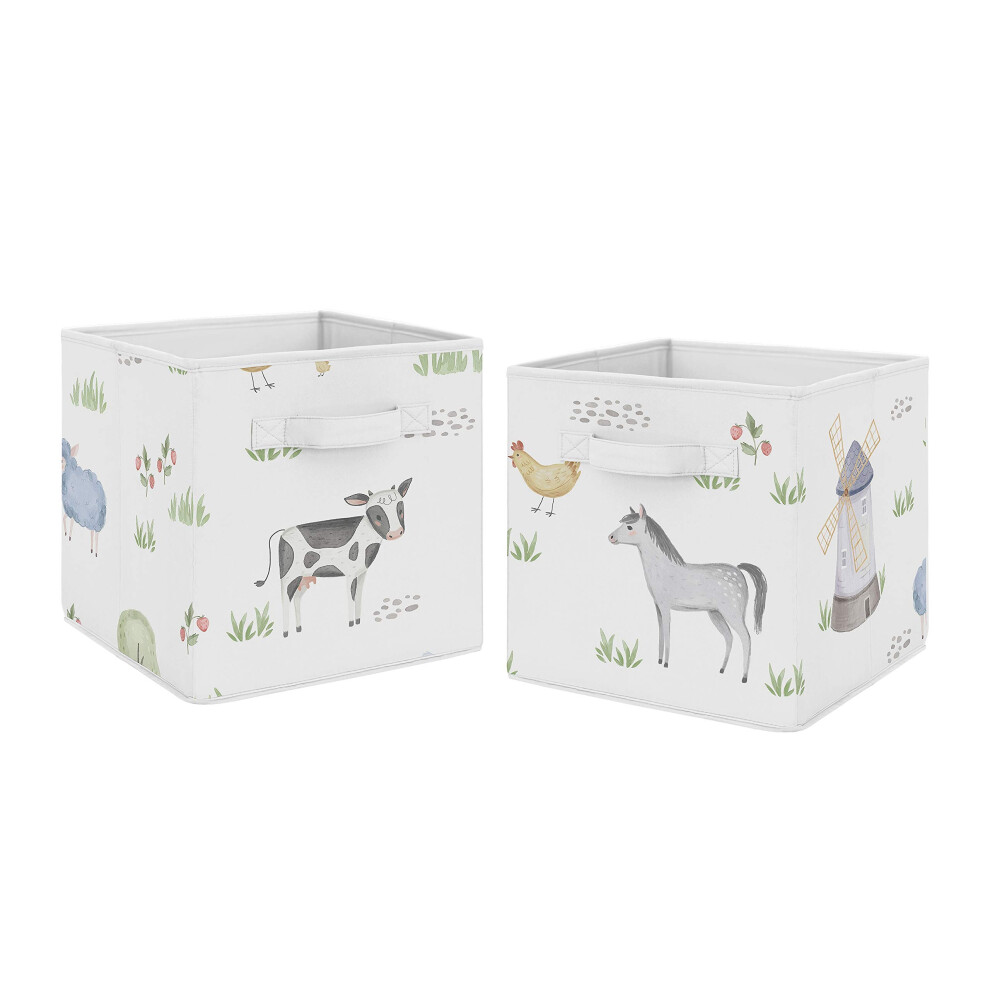 Sweet Jojo Designs Farm Animals Foldable Fabric Storage Cube Bins Boxes Organizer Toys Kids Baby Childrens - Set of 2 - Watercolor Farmhouse Horse Co