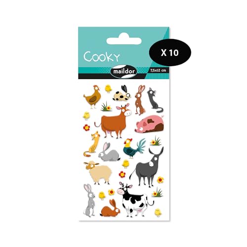 Maildor CY130Cpack - Cooky 3D Stickers - LOT of 10 Sheets 12x8 cm - 330 Stickers - Farm Animals Theme - Children's Arts and Crafts Accessories - Creative