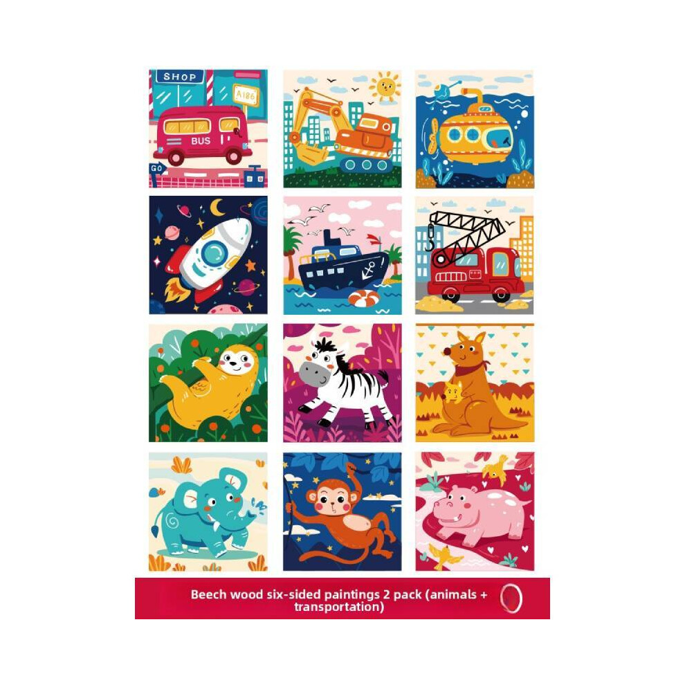 (Animals) 6side Wooden Puzzle With Farm And Marine Life For Childrens Development Brain