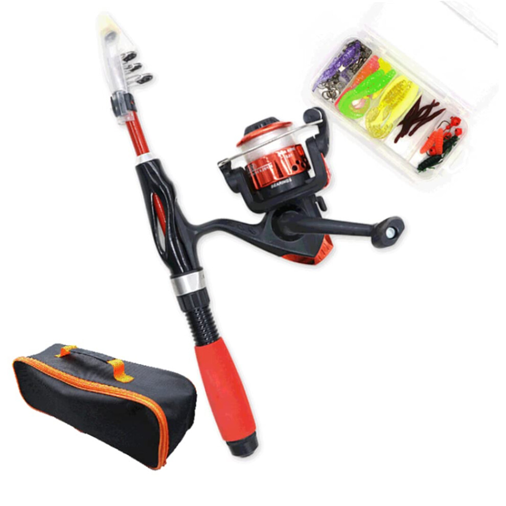 1.8M Telescopic Fishing Set Rod and Spinning Reel Combo Tackle Kit children's carbon fiber starter Complete for Saltwater and Freshwater Fishing