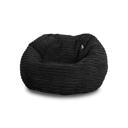 Bags of Beans Corduroy Kids Bean Bag Chair with Filling Included - Lightweight Comfortable Beanbag Seat - Machine Washable Childrens Beanbag Furniture for Girls & Boys - 67 x 48cm (Black)