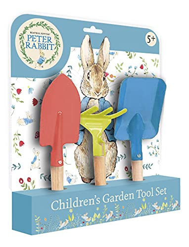 Peter Rabbit Children’s Garden Tool Set – 3-Piece Outdoor Gardening Kit for Kids with Trowel, Spade & Rake – Strong Metal Tools with Wooden Handles – Ages 5+