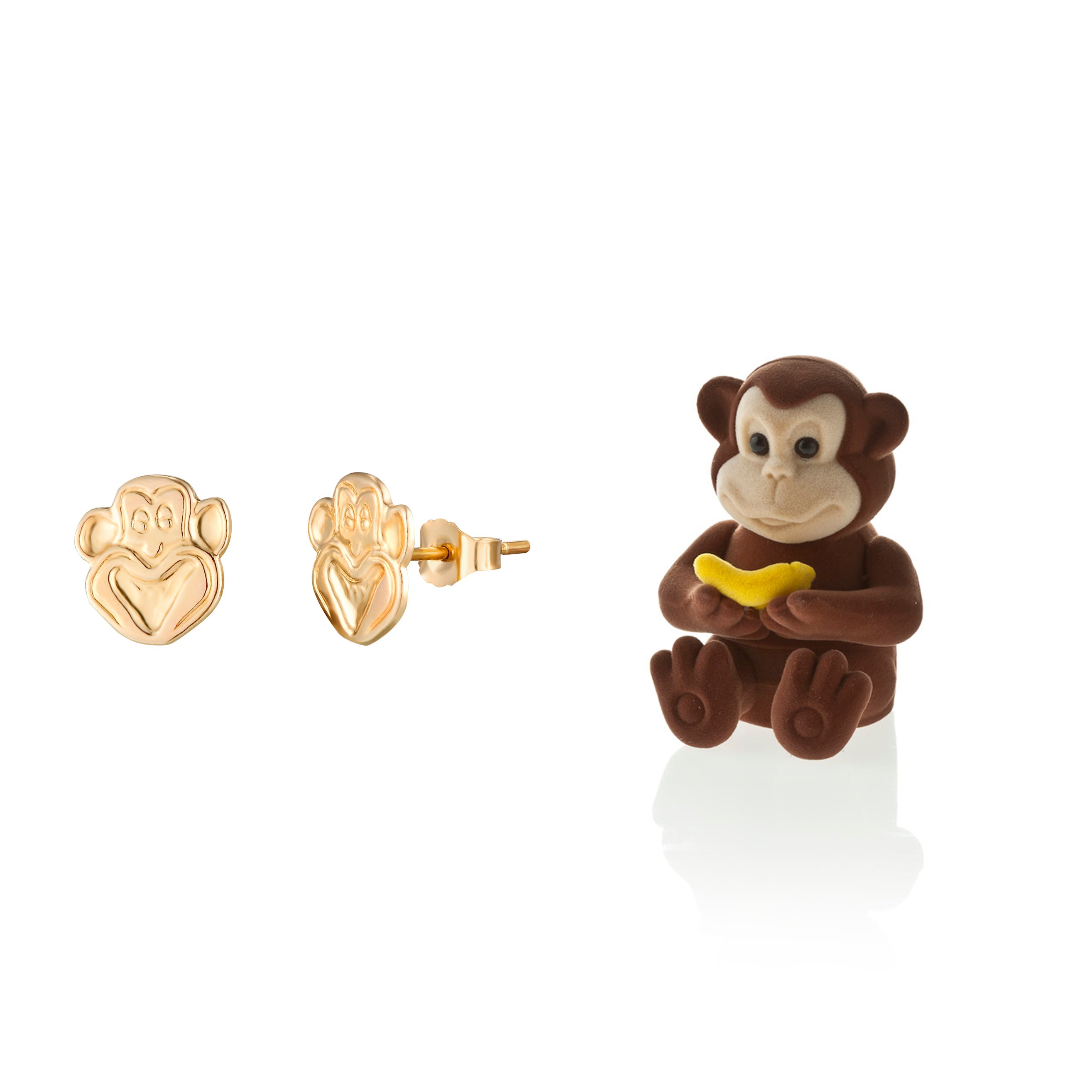 The Jewellery Stockroom Girls 9ct Yellow Gold Monkey Children's Stud Earrings - Novelty Gift Box Included - One Size