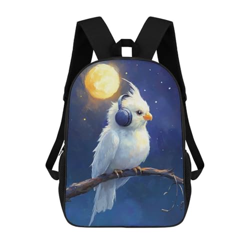 sinyumoney Bird with Headphones Children's School Backpack 3D Printed for Kids Travel Rucksacks Book Bags Kids School Bag 17inch