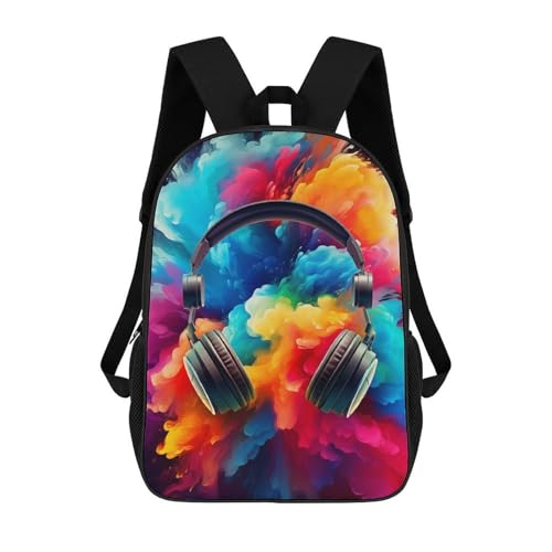 sinyumoney 3D Printed Children's School Headphones Music Backpack for Kids High Capacity Travel Fashion Rucksacks Kids School Bag Casual Back Pack 17inch