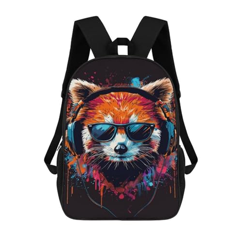sinyumoney Kids 17inch School Bag Stylish Red Panda with Headphones Children's School Backpack School Bookbag Fashion Casual Travel Rucksacks 3D Printed Funny Cool Book Bags