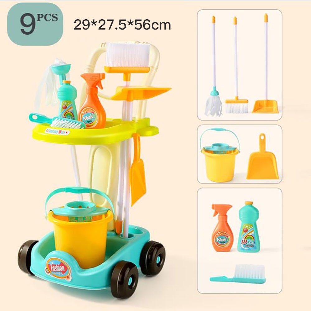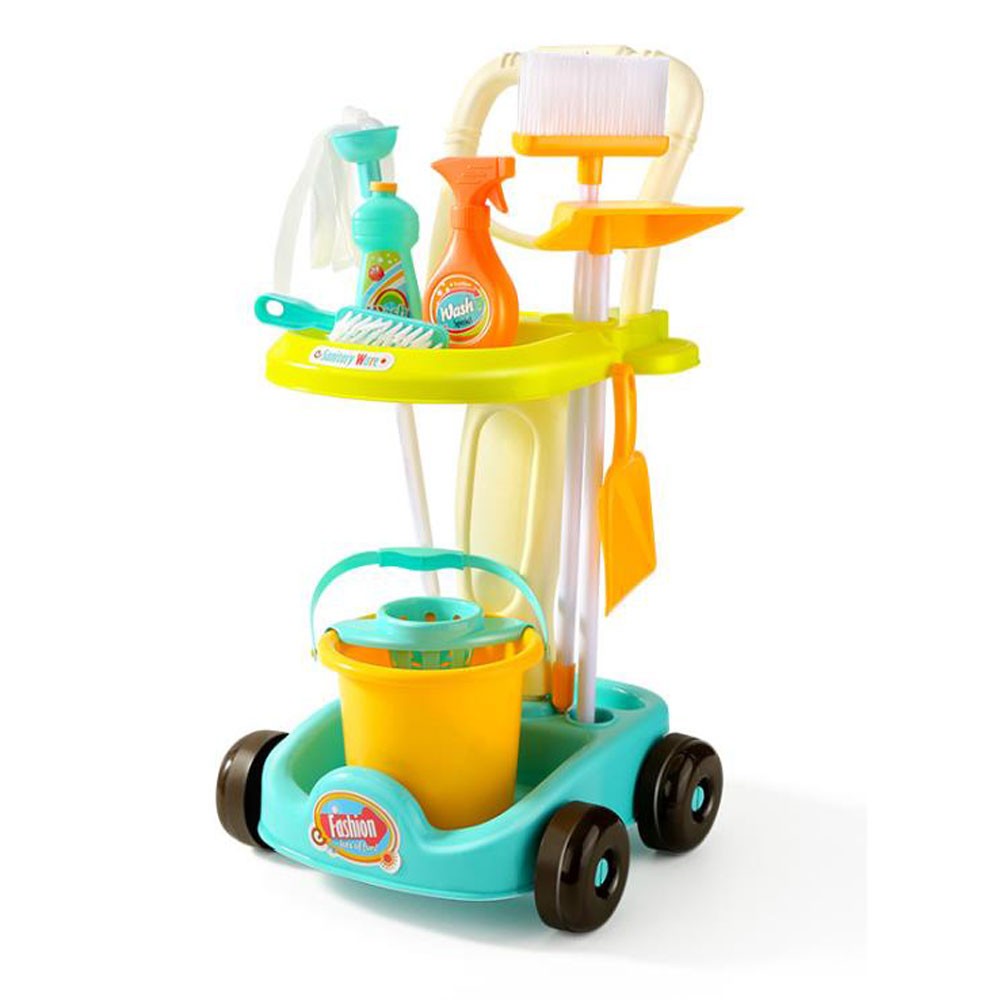 Children's Sweeping Toys Cleaning Trolley Set For Pretend Play ;