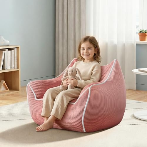 Gryalzes Bean Bag Chair for Kids, Filling Included Toddler Chair with High Back Support & Armrest, Childrens Beanbag Sofa for Gaming Reading, Nursery & Playroom Seating (Pink)