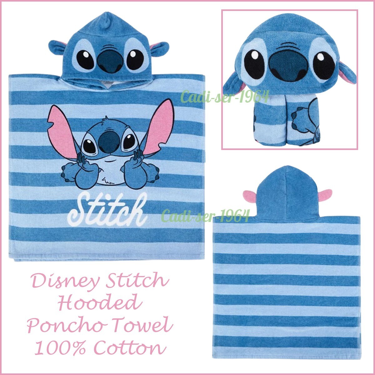 Disney Stitch Hooded Towel/Poncho Beach Swimming Towel Children's Towel NEW