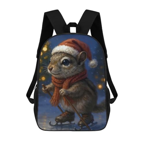 sinyumoney 17 Inch Christmas Squirrel on Ice Skates Backpack, Children's Backpack, Student School Bag Bookbag Rucksack, 3D Printed for Boys Girls