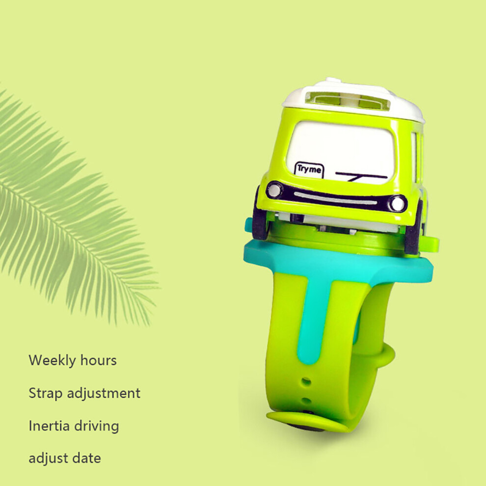 (Green) Alloy Toy Car Mini Q Version Car Bus Children Watch Interactive Induction