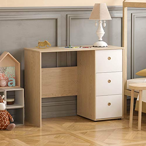 Junior Vida Neptune 3 Drawer Desk Computer Dressing Table PC/Laptop Home Study Workstation Children Kids Furniture (White & Oak)