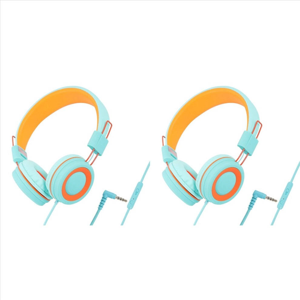 2X Children'S Headphones Headset Wired Colorful Laptop Tablet Phone for Learning Online Class Headphones,Orange+Green