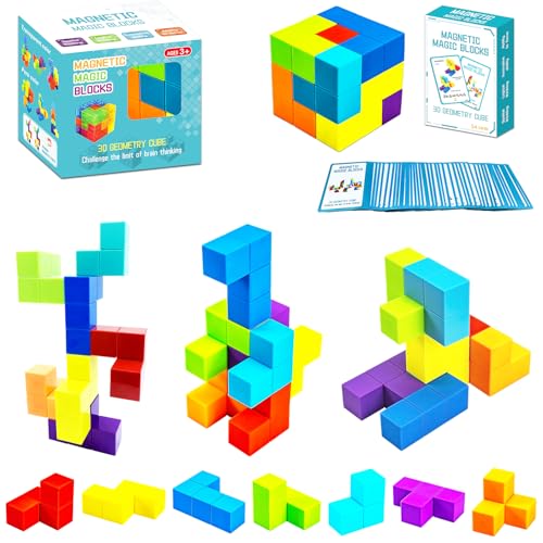 OUXIA Magnetic Building Blocks Magic Magnetic 3D Puzzle Cubes Set of Multi Shapes with Guide Cards, Parent-Child Interactive Children's Educational Toys (Size3)