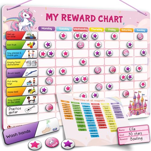 LIKARTO Magnetic Reward Chart for Children with 280 Magnets - Behaviour Chart for Children - Star Chart for Responsibility, Routine and Good Behaviour - Sticker Chart - Pink