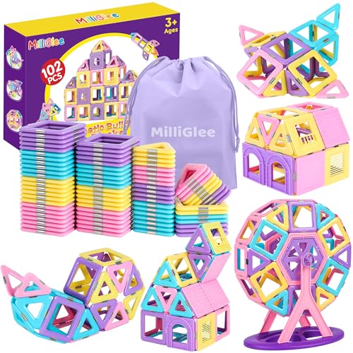 MilliGlee Magnetic Building Blocks - 102 Pieces Magnets Toy for Children with Storage Bag Magnets Children Magnetic Game Magnetic Building Blocks Toy Gifts Girls Boys from 3 4 5 6 7 8-12 Years