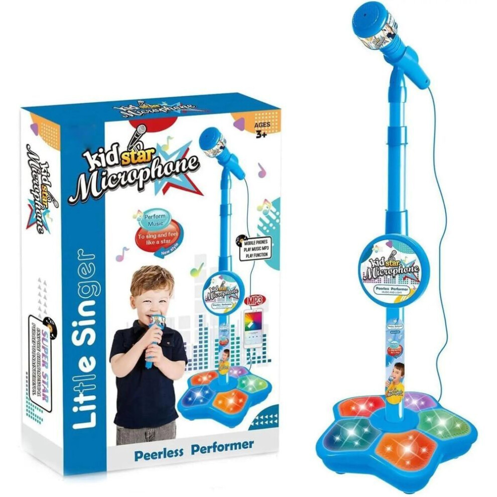 (blue) Kids Microphone and Stand, Kids Karaoke Machine for Girls Boys, Party Sing Musical Toy with Flashing Lights, Children's Microphone