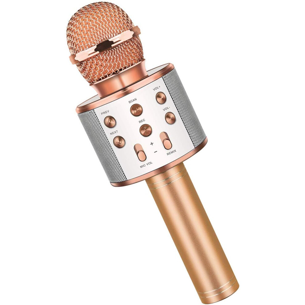 ï¼Rose Gold)BONAOK Karaoke Microphone Bluetooth, 4 in 1 Wireless Karaoke Microphones, LED Children's Karaoke Microphone Speaker, Home KTV Ka