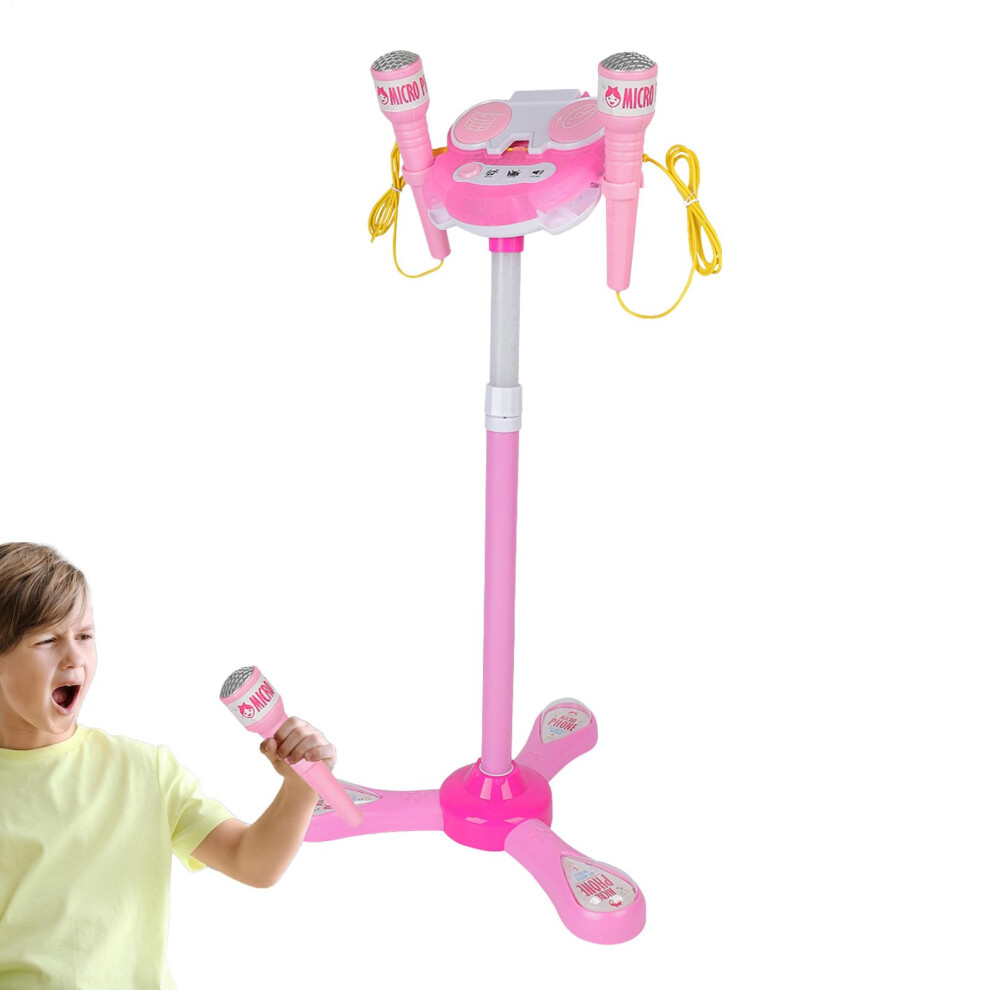 Children's Microphone with Stand, 35.04 Inch Pink Karaoke Machine for Kids, Educational Interactive Game with Music