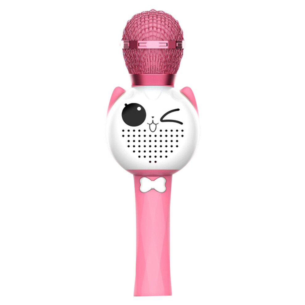 (Pink) Children's Cartoon Wireless Microphone Audio Stereo Integrated Karaoke Mobile Phone Bluetooth Mic