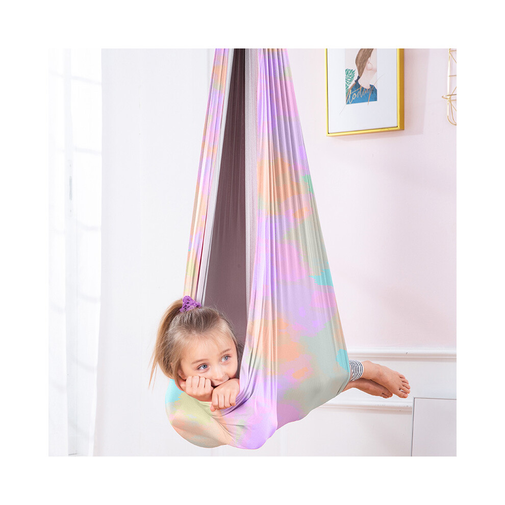 (280*150cm rainbow print) Indoor children's swing, outdoor hammock, hanging chair, elastic sensory yoga