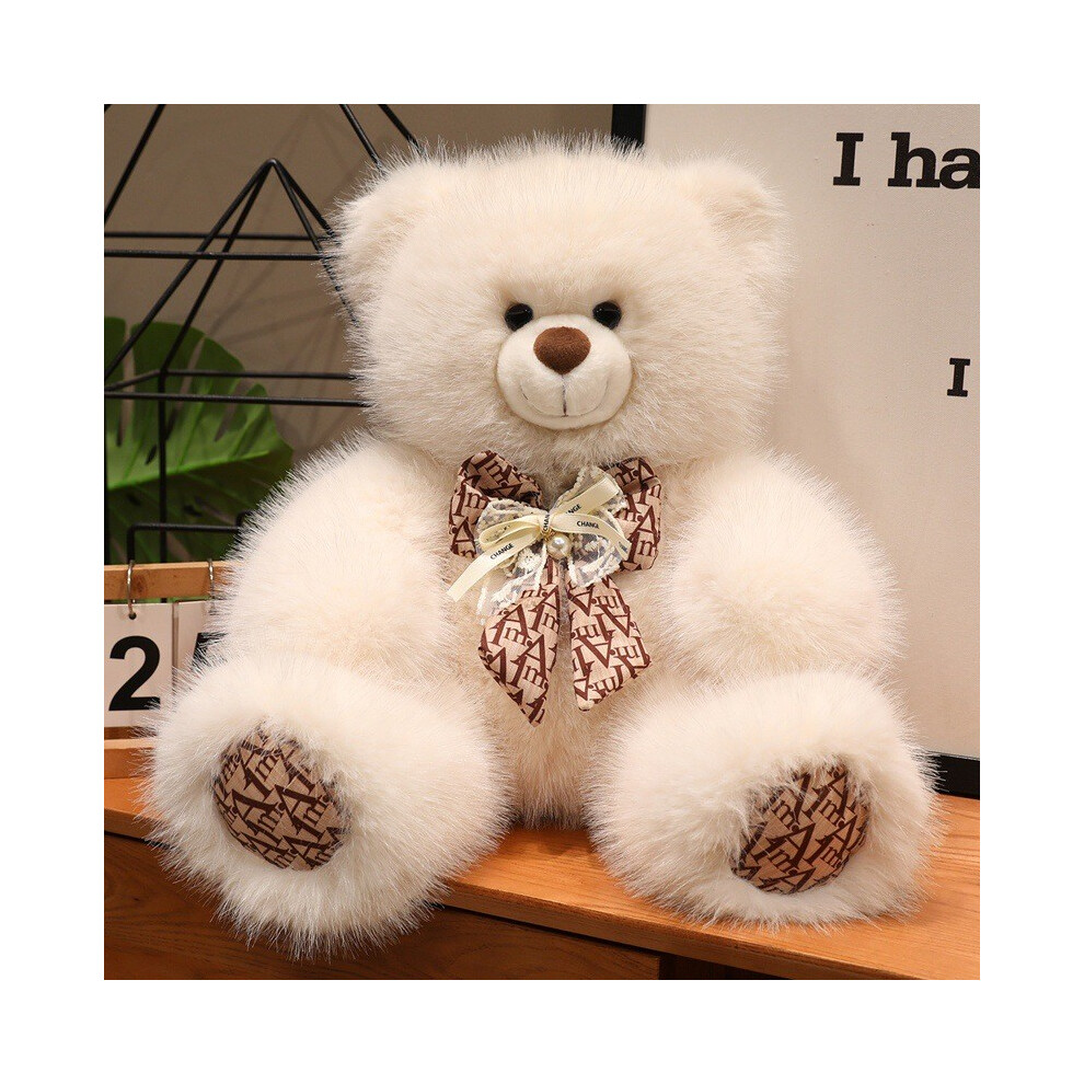 (Beige, 45cm) Bear Teddy Adorable Plush Toy With Bowknot For Childrens Pillow Bedtime Sleep