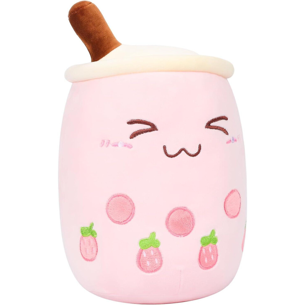 (As show, One size) 19.6 Inches Bubble Tea Stuffed Plush Pillow Pink Round Eye Milk Tea Warm Plush Sleeping Pillow Childrens Gift Decorations