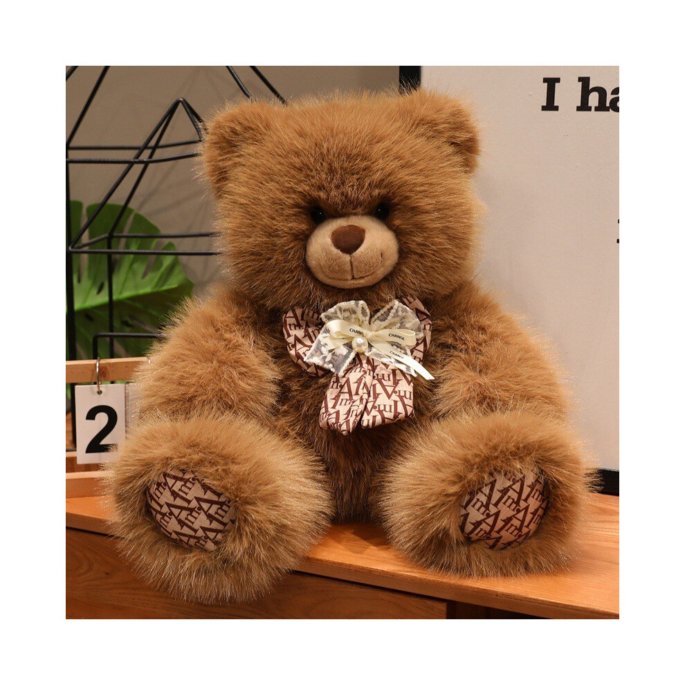 (Brown, 35cm) Bear Teddy Adorable Plush Toy With Bowknot For Childrens Pillow Bedtime Sleep