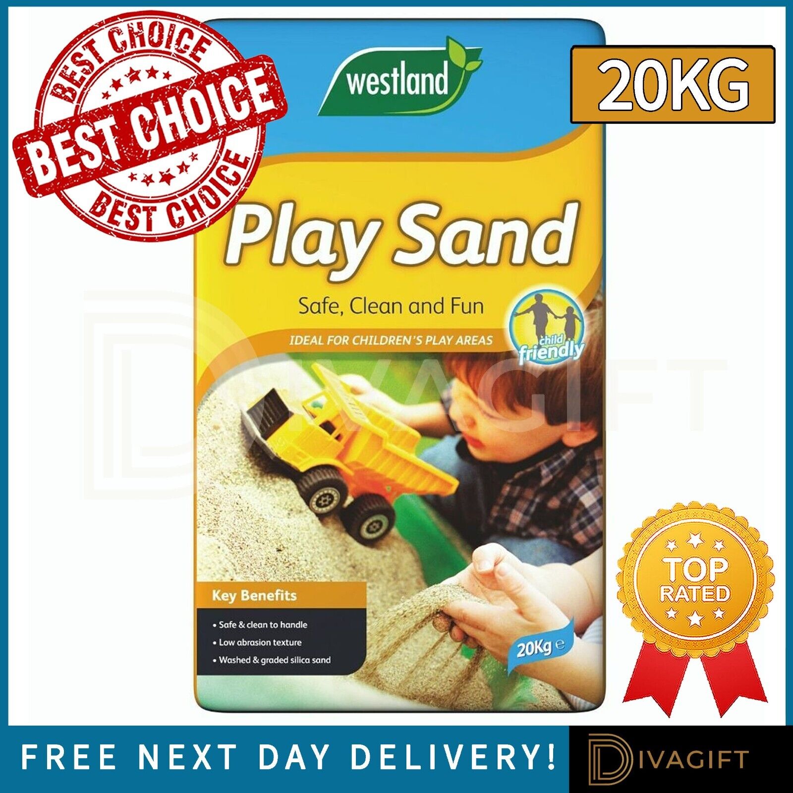 UK's Finest Children's Play Pit Sand 20Kg Bag, Ultra Light Colour, Safe for Kids, Pets & Aquarium NEXT DAY DELIVERY