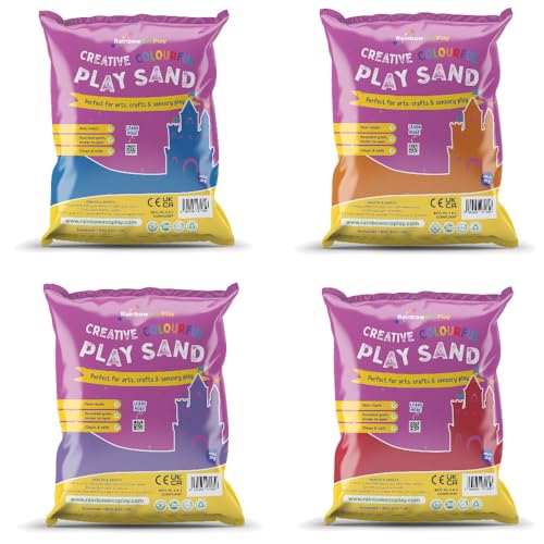 Rainbow Eco Play - Magic Sand Elasti and Smooshy - Assorted Colours – 4 x 485g - Childrens Coloured Sand for Kids - Ideal for Sensory Play