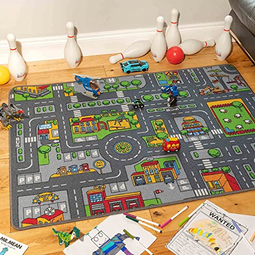 The Rug House Children's Kids Boys Girls City Town Car Roads Interactive Playroom Playmat Creative Toddler Soft Durable Educational Classroom Nursery Bedroom Play Carpet Mat 95cm x 133cm