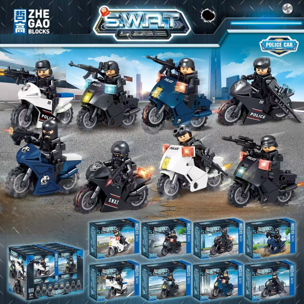 8 police special police motorcycle dolls small ornaments toy model assembling building blocks suitable for Lego children's toys