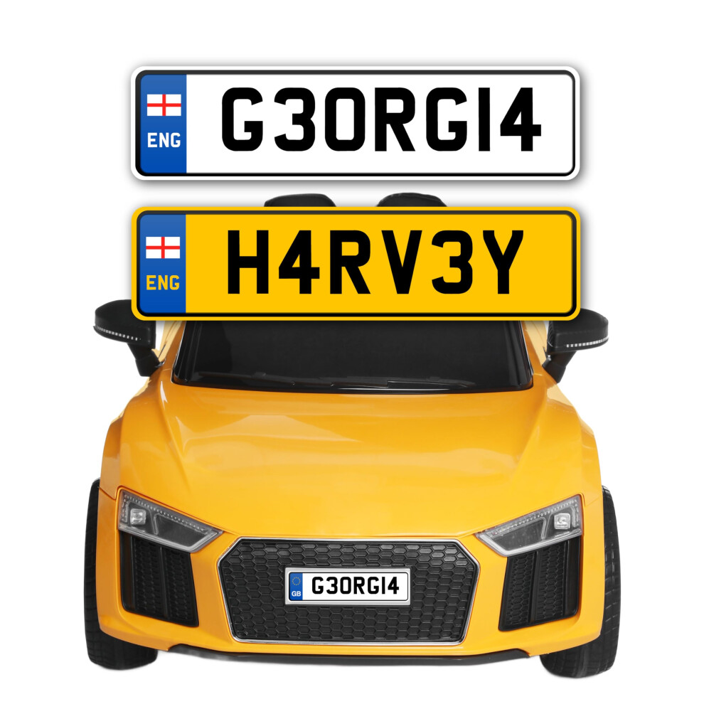 QuoteMyWall 2X Kids Toy Car Numberplate Stickers for Ride On Personalised Decals Peel & Stick for Electric Cars Children's Scooter Trike Bike Mobilit