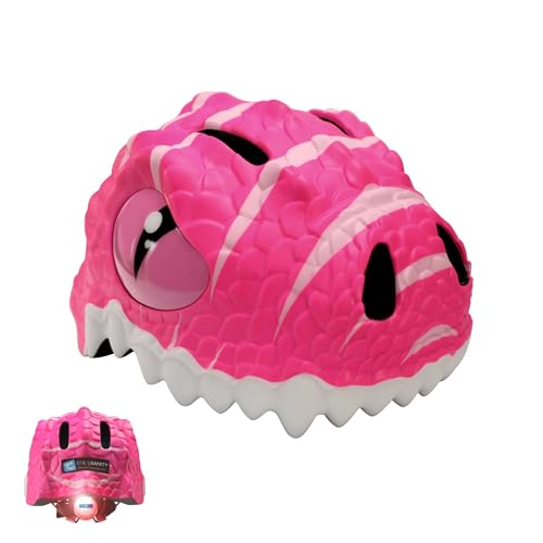 Crazy Safety Pink Dino Children's Bike Helmet | Bike helmet for children aged 2-7 years for bikes, skateboards, balance bikes, scooters, skates Light and adjustable 3D animal helmet 49-55 cm