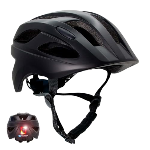 Spielwerk Children's Cycle Helmet Adjustable Size With LED Light Black Blue Medium M 55-59cm Chin Strap Visor Peak 3-13 Years BMX Bicycle Mountain Bike Safety Helmet CE-Certified Insect Repellent
