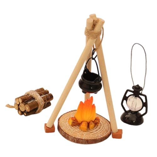 Guohetuk Camping Lamp in 1:12 Scale for Dollhouses, Children's Toys, Sturdy Furniture, Gift Idea, Hanging Wooden Log for Sand Table, Decoration, Red Brick